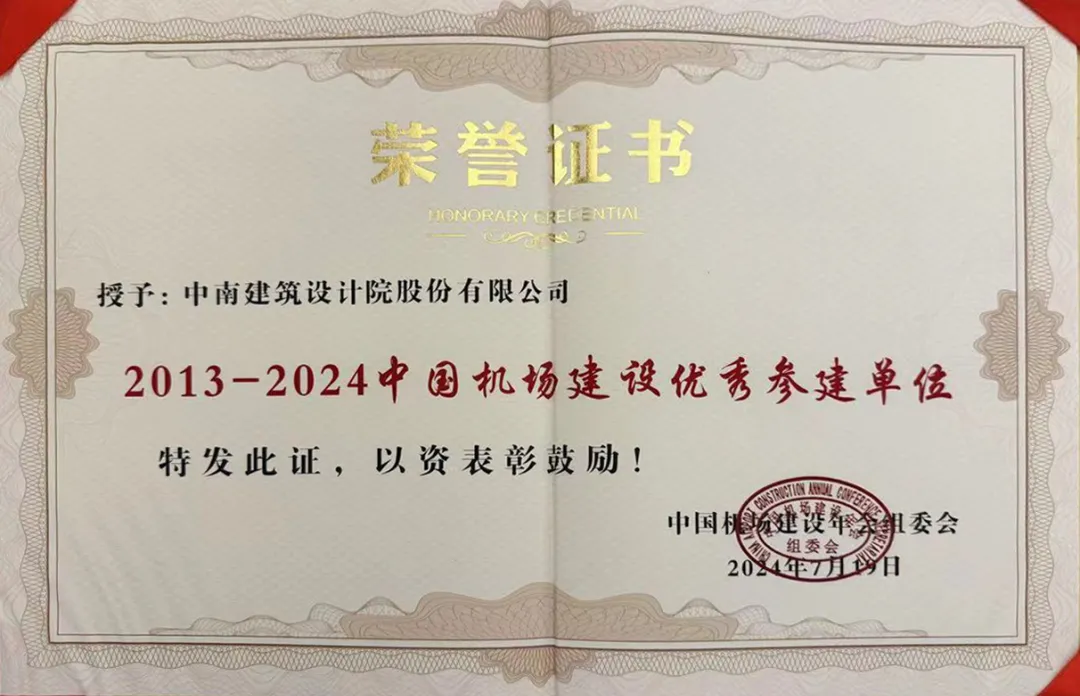 中南建筑設(shè)計(jì)院獲評(píng)“中國機(jī)場(chǎng)建設(shè)優(yōu)秀參建單位”